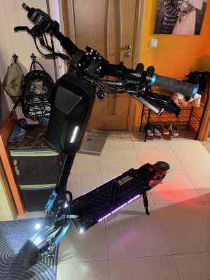 Разгоняется до 75 км/ч, есть функция фейс контроля, в комплекте идёт сиденье и зарядное устройство, в подарок сумка, зеркала...