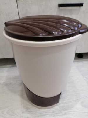 Мусорное ведро с педалькой. Очень красивое и удобное. Все работает. Высота примерно 37, ширина примерно 32 .